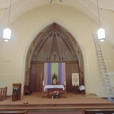 - Polished Mahogany--Doors, crown moulding, and moulding strip around lower portion of house.